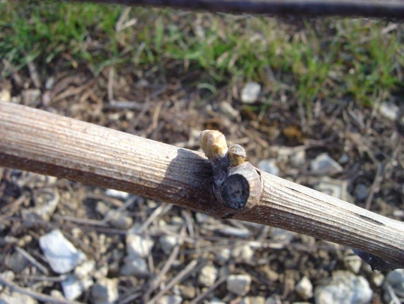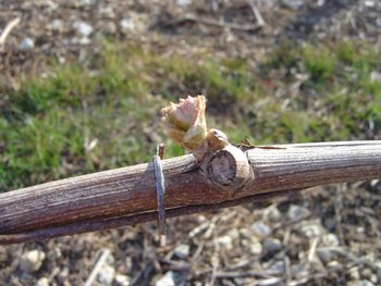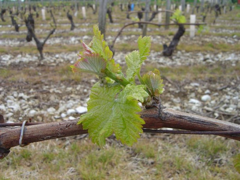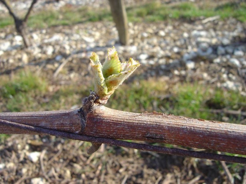 Opening of the bud is the stage known as "green tip" which in fact is a "red tip" for our Blanc Fumé (cépage Sauvignon).