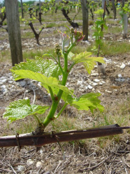 Stade 3 feuilles étalées... et on aperçoit les prémices d'un raisin.
