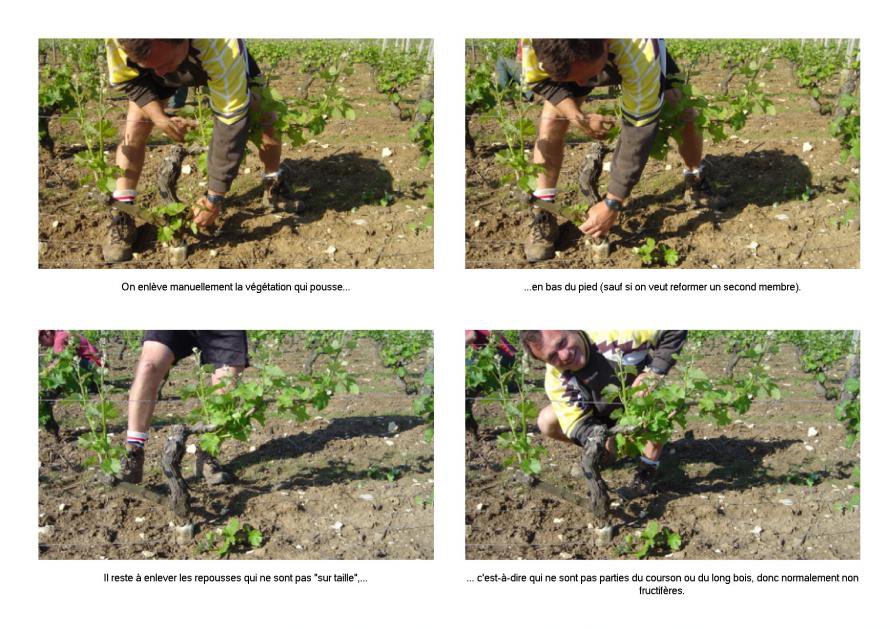 About "ébourgeonnage" : perhaps the hardest work in the vineyard. Better to show it by an example...
