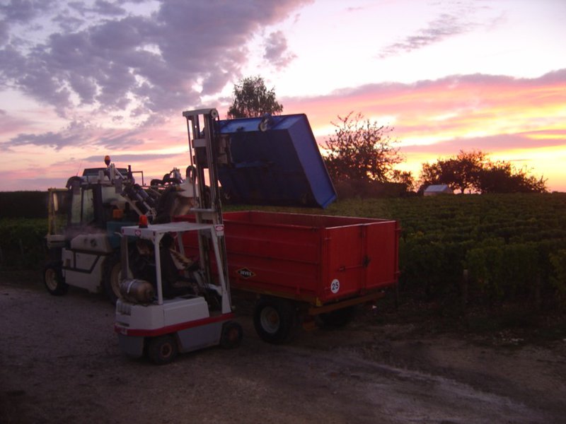 We harvested from September 29th till October 6th by a beautiful weather, which ended a summer contrasted but very favorable to a good qualitative expression of our grapes of Blanc Fumé. The fermentations are ending, already revealing a lot of aromatic complexity. Below, Cédric in full work with a magnificent sunrise!