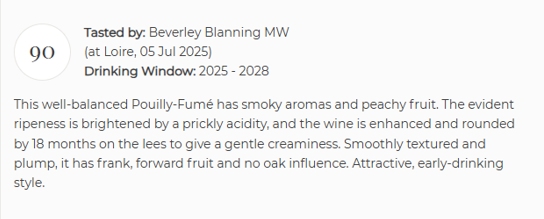 Pouilly Fumé "Cuvée des Acoins" 2023 90 points |